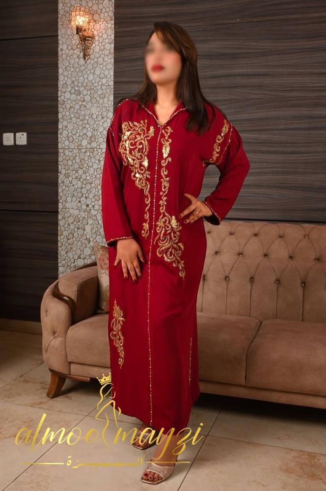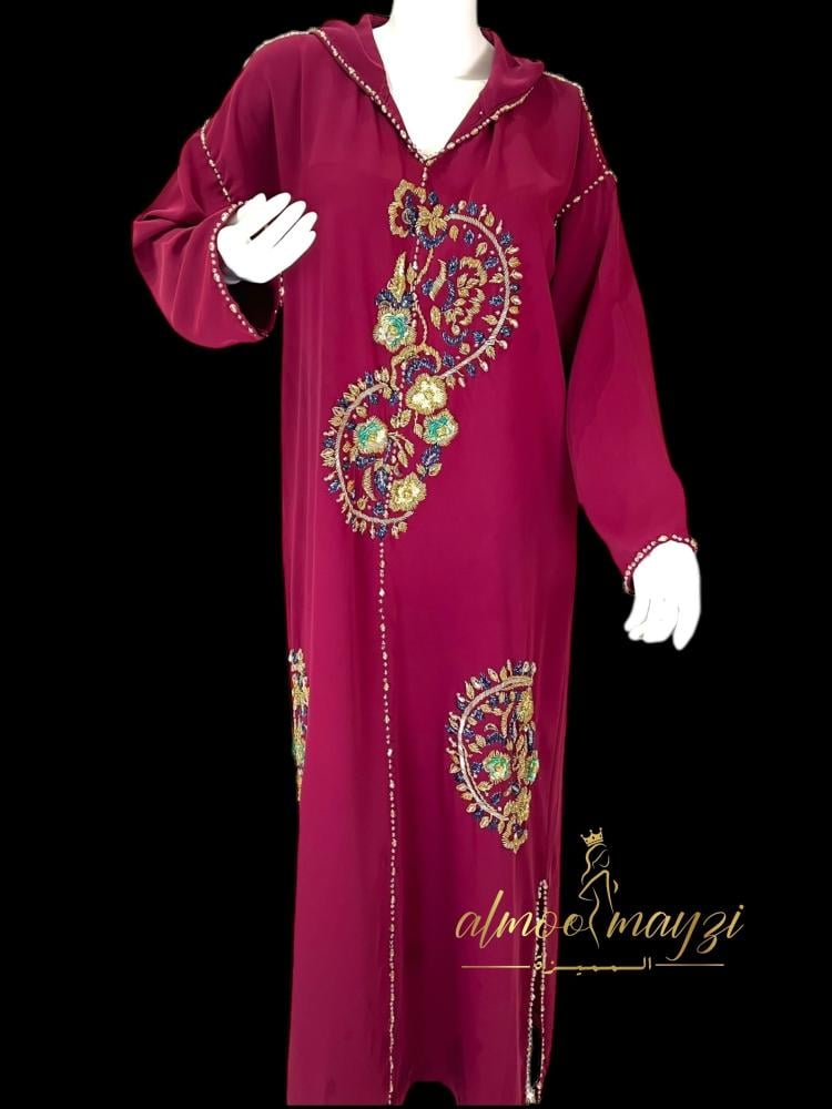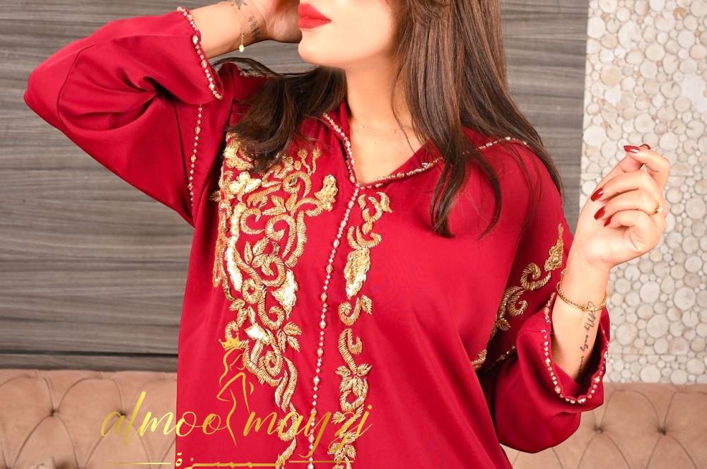 جلابة المميزة باللون الأحمر الداكن وتطريز ملون مميز