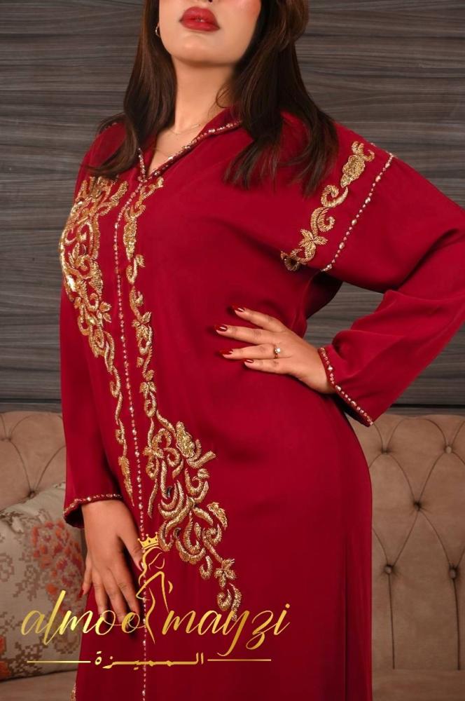 جلابة المميزة بالون الأحمر الداكن وتطريز ملون مميز